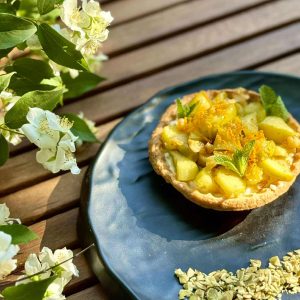 ვაშლის შტრუდელი ნაყინით და კრემით