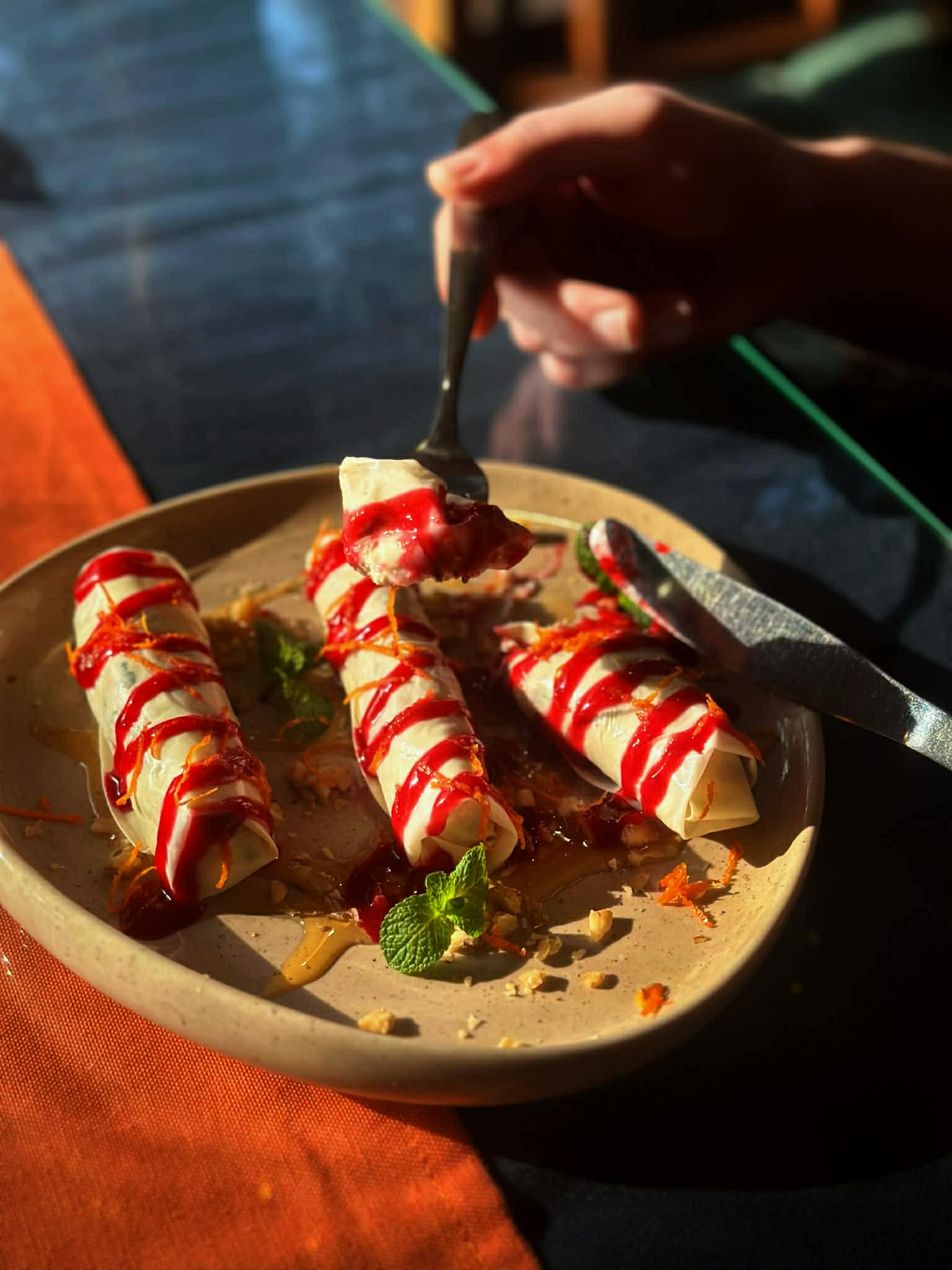 ნადუღი სულუგუნის ფირფიტებში კენკრის სოუსით